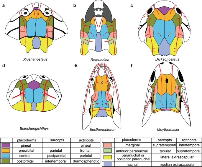 硬皮魚和骨魚的顱骨頂模式比較
