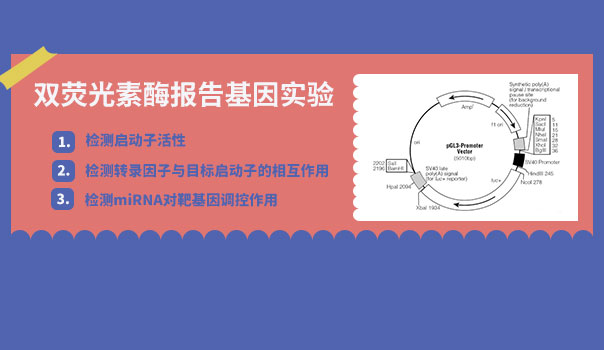 雙熒光素酶報(bào)告基因分析通常以螢火蟲熒光素酶為報(bào)告基因,以海腎熒光素酶為內(nèi)參基因。所構(gòu)成的報(bào)告系統(tǒng)具有靈敏度高、動(dòng)態(tài)范圍廣、應(yīng)用靈活等優(yōu)勢(shì),廣泛應(yīng)用于基因調(diào)控、非編碼RNA靶向互作等研究領(lǐng)域。